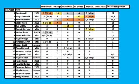 1. futam: Gondok voltak ezért lett ennyi pont mivel az időmérőn mindenki egyénileg ment és volt mérhető végeredménye, ezért azt láttuk a legigazságosabbnak, hogy a futam rajtjának a pillanata lesz a végeredmény, mivel akkor kezdődtek a gondok.